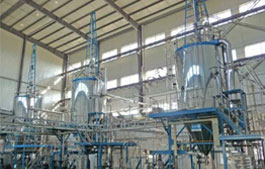 空氣通過過濾器和加熱器,進入干燥塔頂部的空氣分配器,然后呈螺旋狀均勻進入干燥室。料液由料液和熱空氣并流接觸,水份迅速蒸發,在極短的時間內干燥為成品...